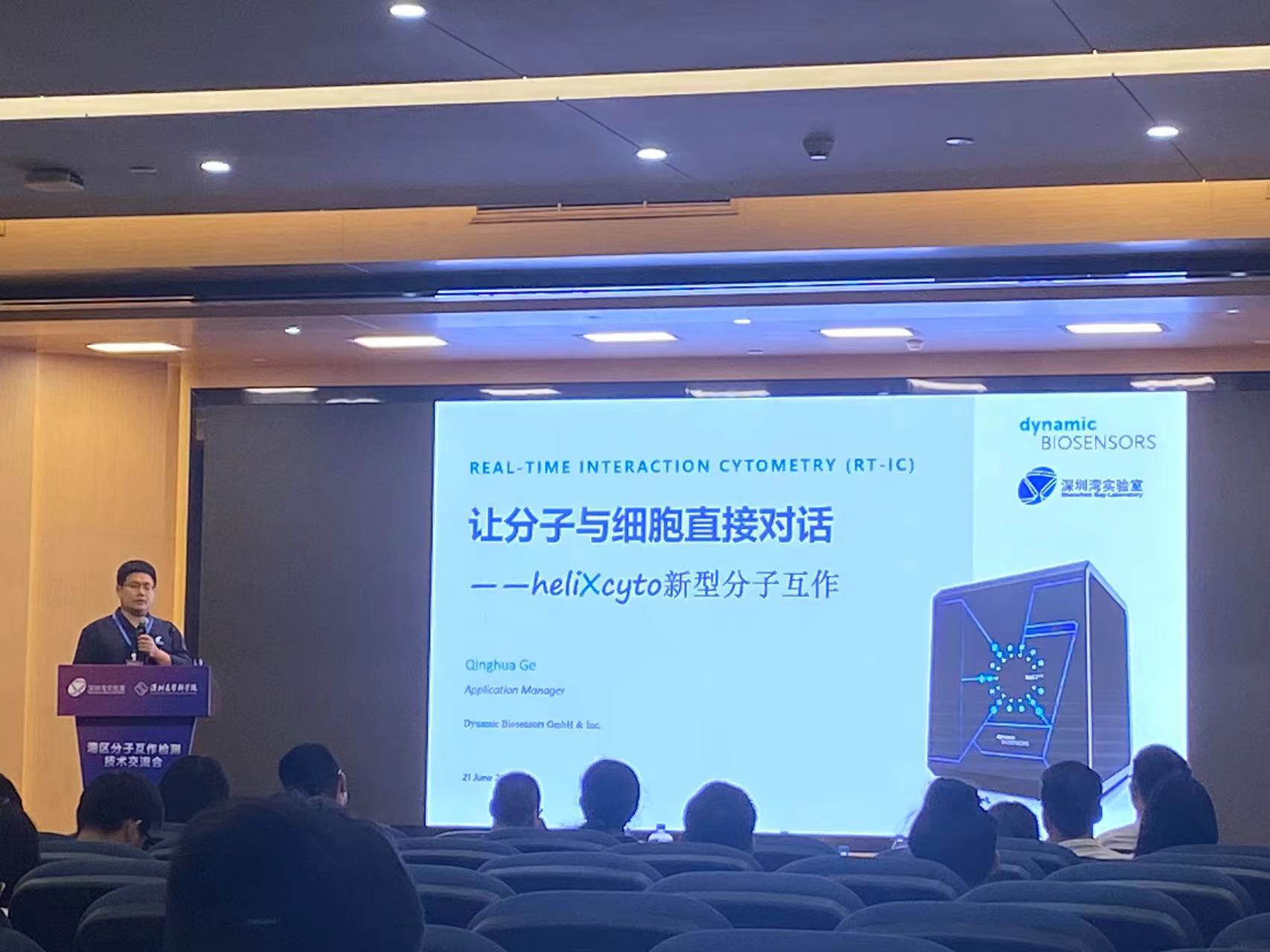 其中,同騰睿杰技術應用經理葛慶華博士作為演講嘉賓,以《heliXcyto新型分子互作——讓分子與細胞直接對話》為題進行了生動而深入的講解。他詳細介紹了heliXcyto這一原生分子互作細胞分析系統,并全面展示了其卓越功能。通過實證案例和數據,充分證明了該系統在科研和藥物發現領域的重要應用價值。heliXcyto系統結合了生物物理測量的原理和流式細胞術(cytometry),可以精確自動化地對分子與細胞的結合動力學、解離動力學、親和力和親合性進行分析,為科研工作者提供了一種創新的方法,在生理條件下檢測活細胞或固定細胞的分子互作。葛慶華博士的精彩演講激發了與會者濃厚的興趣,并引發了熱烈的討論。