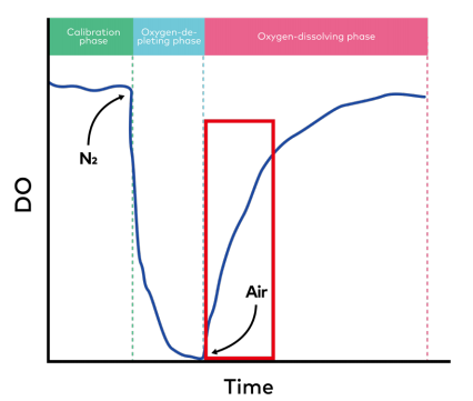 圖2. KLa測定過程中DO的時間過程,紅框表示用于確定KLa的DO的時間過程