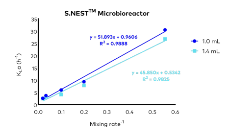 本技術說明展示了S.NEST微型生物反應器中KLa值是可調節的。通過調整液體積或混合速率可以獲得不同的KLa值,從而確定需氧培養的最佳培養條件。S.NEST培養板中內置的DO傳感器還可以使用戶能夠在所需條件下手動確定KLa值,以進一步進行過程轉移和規模放大。