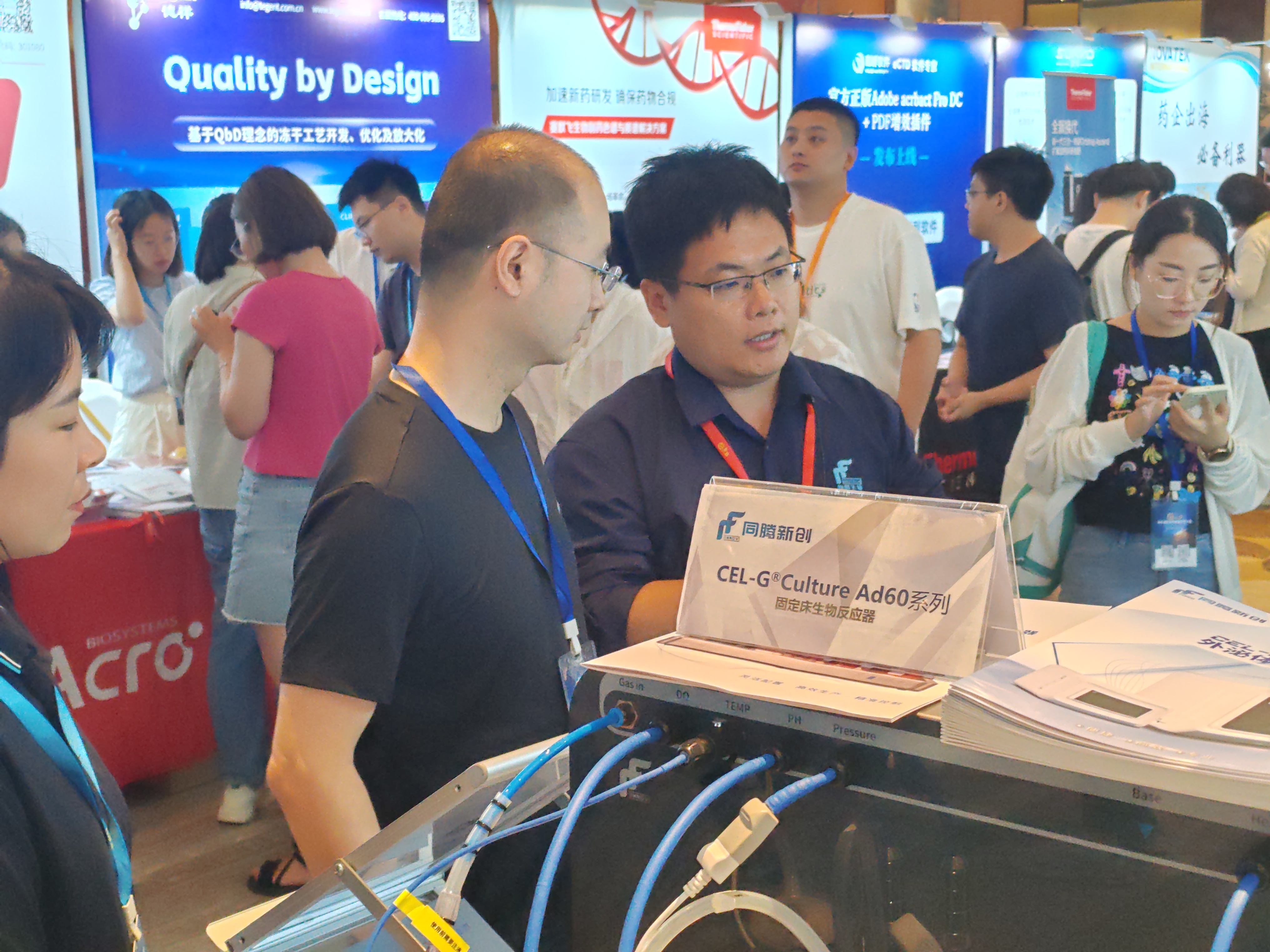 在這場生物藥行業(yè)的盛會中,同騰睿杰以耀眼之姿攜其旗下熱門產(chǎn)品亮相A25展臺,成為全場矚目的焦點。CEL-G®Culture Ad60系列固定床生物反應(yīng)器、Refeyn TwoMP單分子質(zhì)量分析系統(tǒng)、WOLF G2單細胞柔性分選系統(tǒng)、helixcyto原生分子互作細胞分析系統(tǒng),每一款產(chǎn)品都以其獨特的創(chuàng)新特性和卓越性能,吸引了眾多專家學(xué)者和行業(yè)同仁的駐足參觀與高度評價。