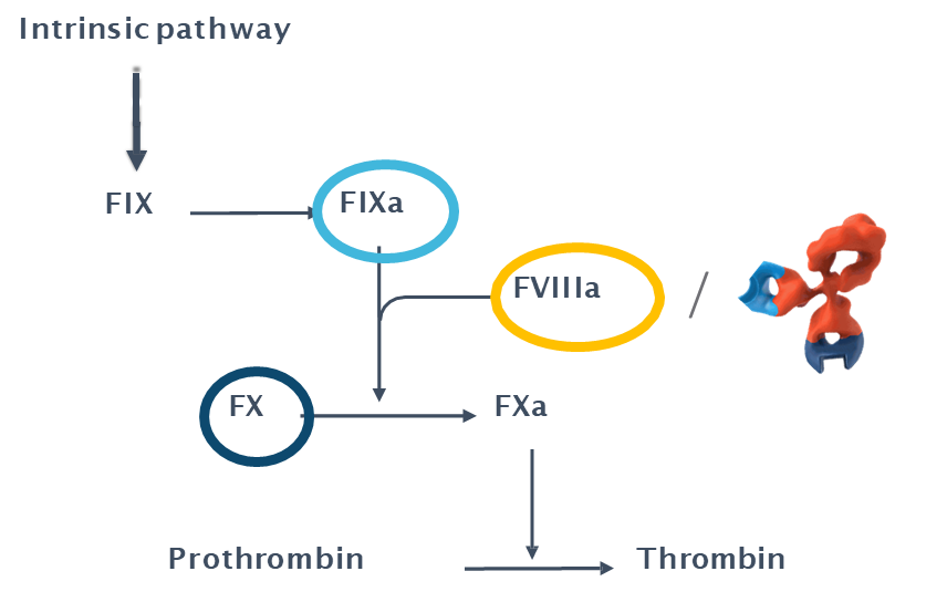 圖2. FIX、FX與FVIIIa形成三元復(fù)合物催化凝血酶形成示意圖。