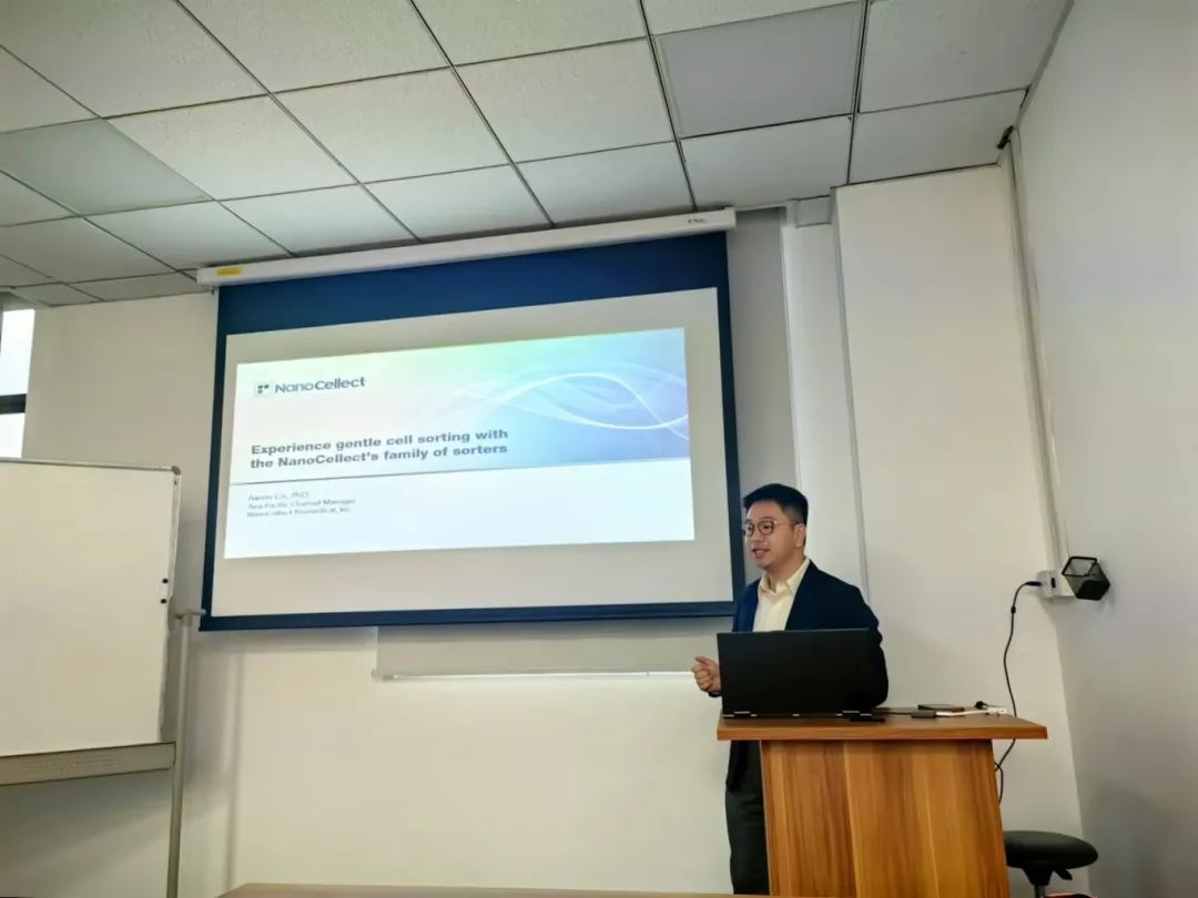 2024年10月31日的金秋午后,上海復旦大學的技術交流會,同騰睿杰的合作伙伴——nanocellect公司的亞太區渠道經理,林然博士作為演講嘉賓參加了本次交流會。他以“單細胞柔性分選進入成像分選時代”為主題,為這場學術交流盛會獻上了一場精彩絕倫的演講。