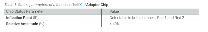 表1. 功能性 heliX® 適配器芯片的狀態(tài)參數(shù):
