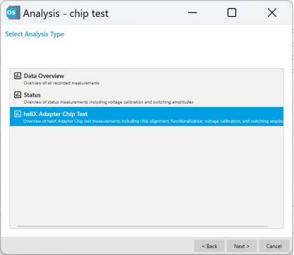 heliOS 提供了自動(dòng)的 heliX® 適配器芯片測(cè)試分析功能,旨在快速評(píng)估您的芯片質(zhì)量。要分析芯片測(cè)試的結(jié)果,只需在實(shí)驗(yàn)文件底部選擇“分析”,然后在自動(dòng)分析向?qū)е羞x擇 heliX 適配器芯片測(cè)試作為分析類型即可。