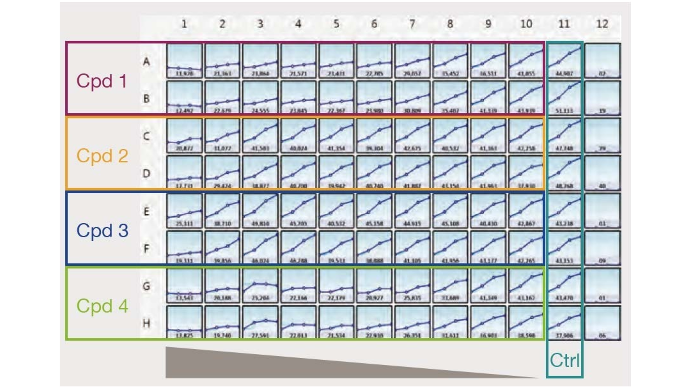 • 在96孔板中加入4種化合物(10種濃度)和1種對照液;