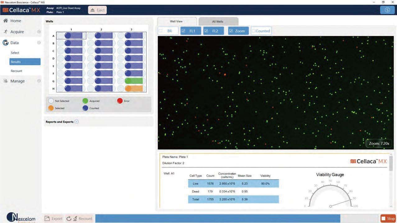 Cellaca MX已經過嚴格檢測和校驗,可確保高精準結果。與使用血球計數板人工計數相比,Cellaca MX更加準確。此外,當細胞計數結果超出范圍(樣本中含有的細胞數量過少或過多)時,Cellaca MX還可以向操作人員發出警告提示,并給出修正建議(按何種比例濃縮或稀釋細胞樣本)。