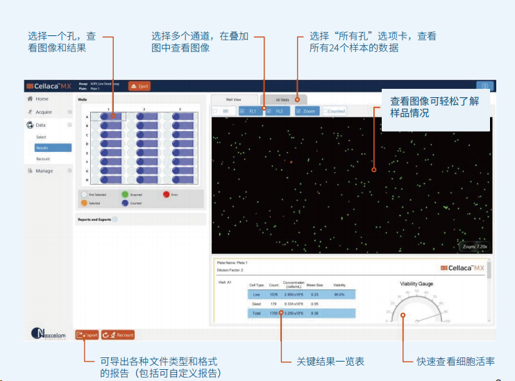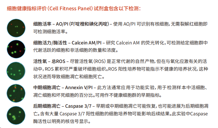 可在 Cellaca MX上使用細胞健康指標評價(Cell Fitness Panel)試劑盒