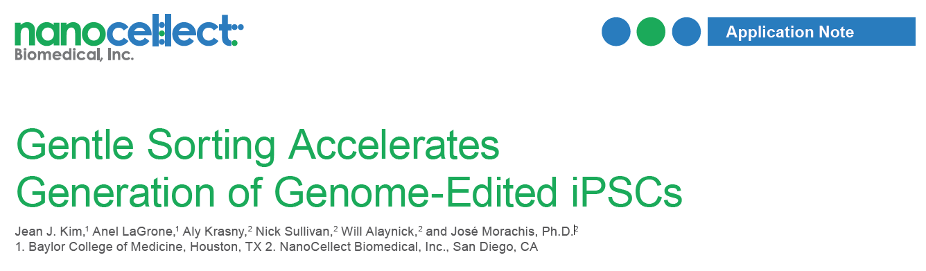 本篇文章主要討論了一種名為柔性分選的細胞分選方法,該方法可以加速生成基因編輯的誘導多能干細胞(iPSCs)。研究人員使用CRISPR技術對iPSCs進行基因編輯,以用于體外疾病模型研究。通過使用Gentle Sorting方法,研究人員能夠更快地篩選和分離編輯過的細胞,從而提高了iPSCs的生成效率。這項研究由Baylor College of Medicine和NanoCellect Biomedical, Inc.的科學家共同完成。