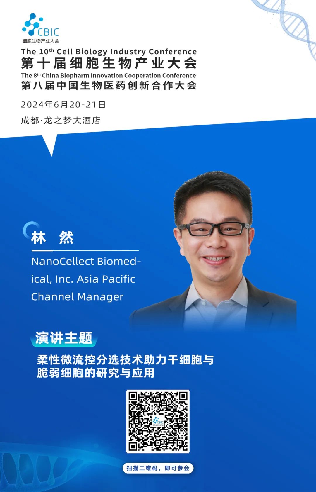 同騰睿杰(上海)生物科技有限公司即將亮相本次大會,并在C7展臺展示本次備受矚目的產品。屆時同騰睿杰的合作伙伴nanocellect公司的Asia Pacific Channel Manager—林然博士將帶來《柔性微流控分選技術助力干細胞與脆弱細胞的研究與應用》精彩演講,歡迎行業同仁參觀參會!